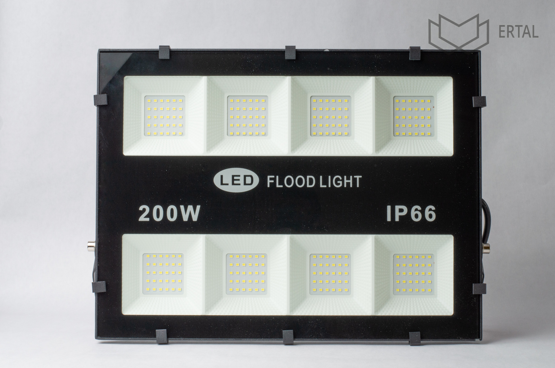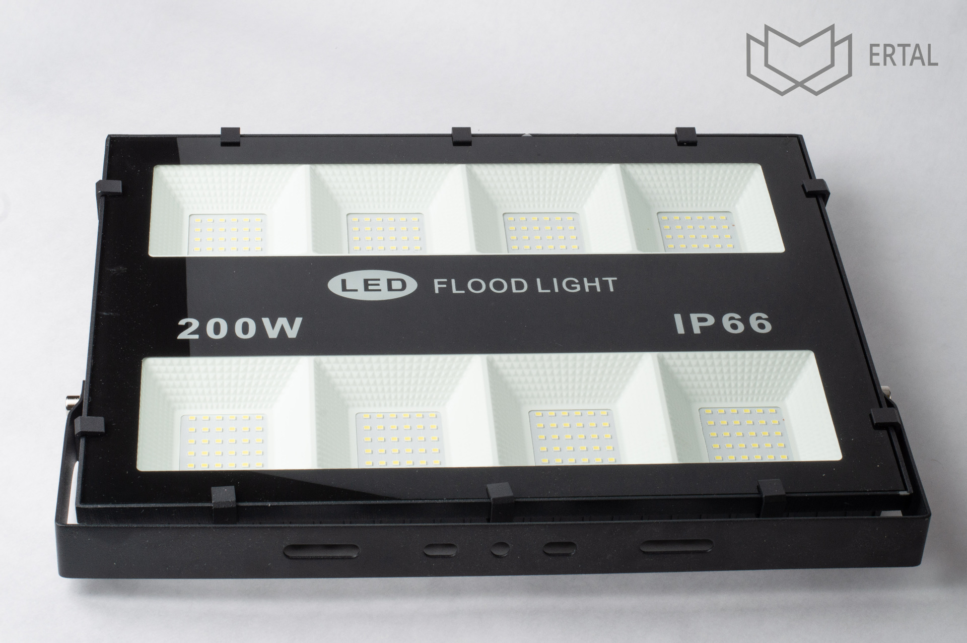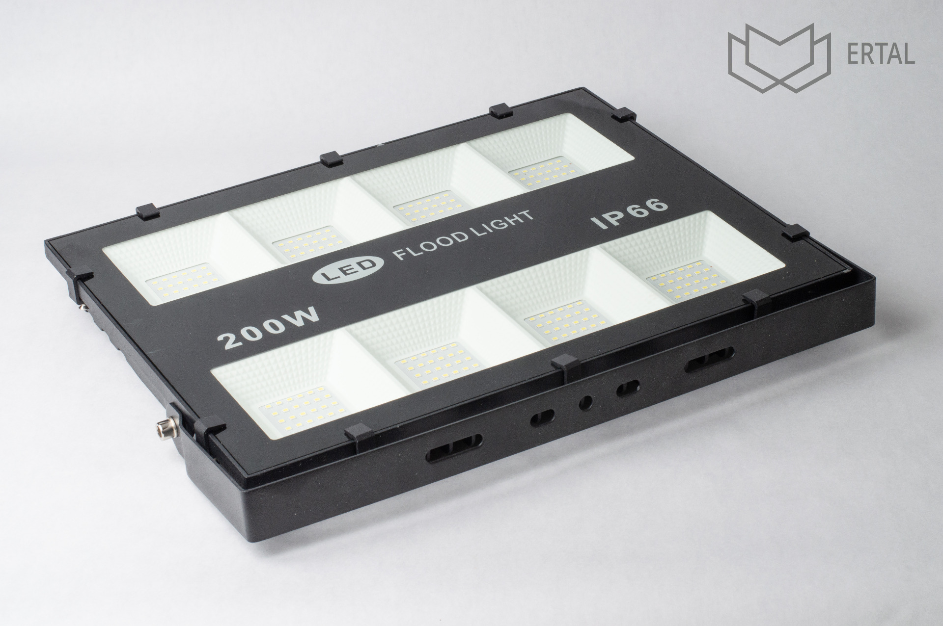 LED svetlomet o celkovom výkone 200w produkuje 100 lm na watt. Výhodou LED svetlometu je plný výkon ihneď po zapnutí, nie je potrebné čakať na zahriatie a pod.